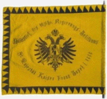 Die anderen Programmpunkte, wie Abend vorher: / großer Zapfenstreich, am Festtage: Tagreveille, Empfang der Festgäste, Beflaggung der Stadt, Festessen, Concert usw. - glaube ich - weil selbstverständlich - nicht erst eigens erwähnen zu müssen. Eine Schar von hiesigen Bürgerfräulein fungierten als Ehrenjungfrauen bei diesem Fahnenfeste. Ebenso half auch eine große Schar kleiner weißgekleideter Mädchen das heutige Fest zu verherrlichen. Die Herrschaften der Umgebung waren ebenfalls anwesend.